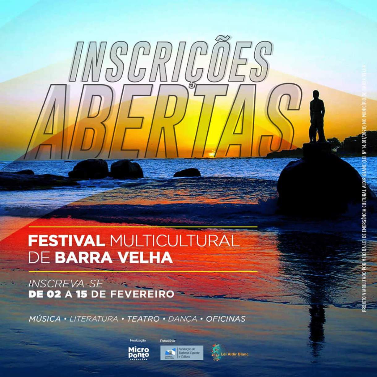 O 1º Festival Multicultural de Barra Velha ocorre nos dias 24, 25 e 26 de março, das 19h às 22h, pelos canais do Facebook e YouTube da Microponto Produções. O evento é gratuito e aberto a toda comunidade. O Festival é viabilizado por meio da Lei de Emergência Cultural Aldir Blanc (Lei nº 14.017/2020), no município de Barra Velha.