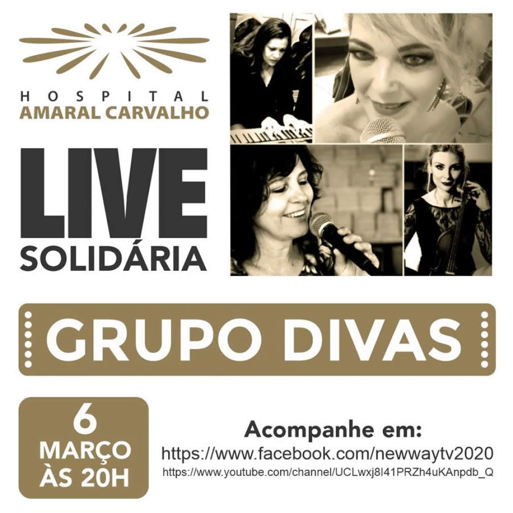 Neste sábado (6/março), às 20h, será realizada a live solidária do grupo Divas, com arrecadação para o Hospital Amaral Carvalho (HAC). O show é uma organização da Marco Savian Produções e New Way TV, com apoio de empresários jauenses, para contribuir com a Instituição que é referência em tratamento de câncer e mantenedora do Centro de Combate à COVID-19 em Jaú.
