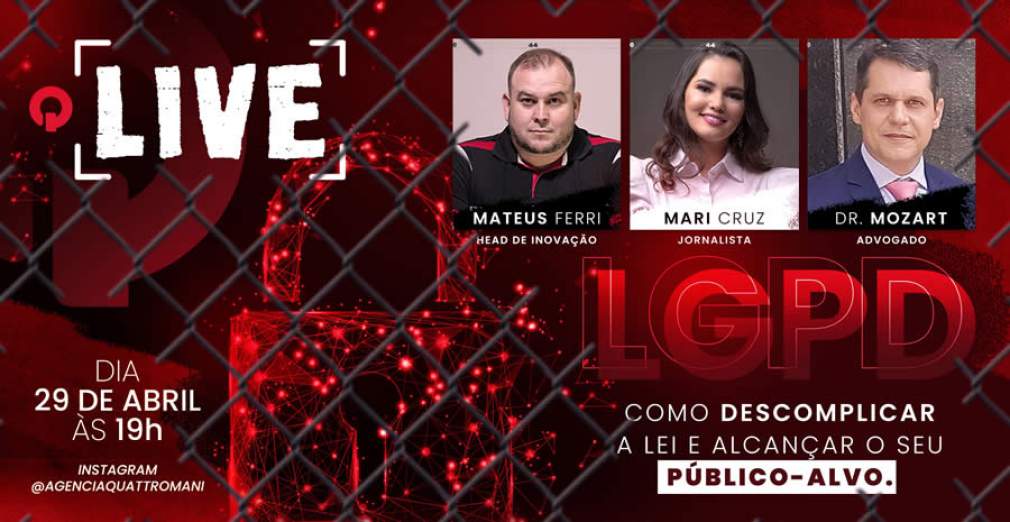 Desde que a Lei Geral de Proteção de Dados (LGPD) foi sancionada, em setembro de 2020, a Quattromani Propaganda vem estudando estratégias para oferecer serviços em conformidade com a legislação, que passa a valer a partir de agosto deste ano. Para esclarecer as dúvidas em torno da LGPD e seus impactos nas ações de Marketing, a agência promove a live “LGPD: como descomplicar a lei e alcançar o seu público-alvo” na próxima quinta-feira, 29/04, às 19h, na conta de Instagram da Quattromani Propaganda @agenciaquattromani .