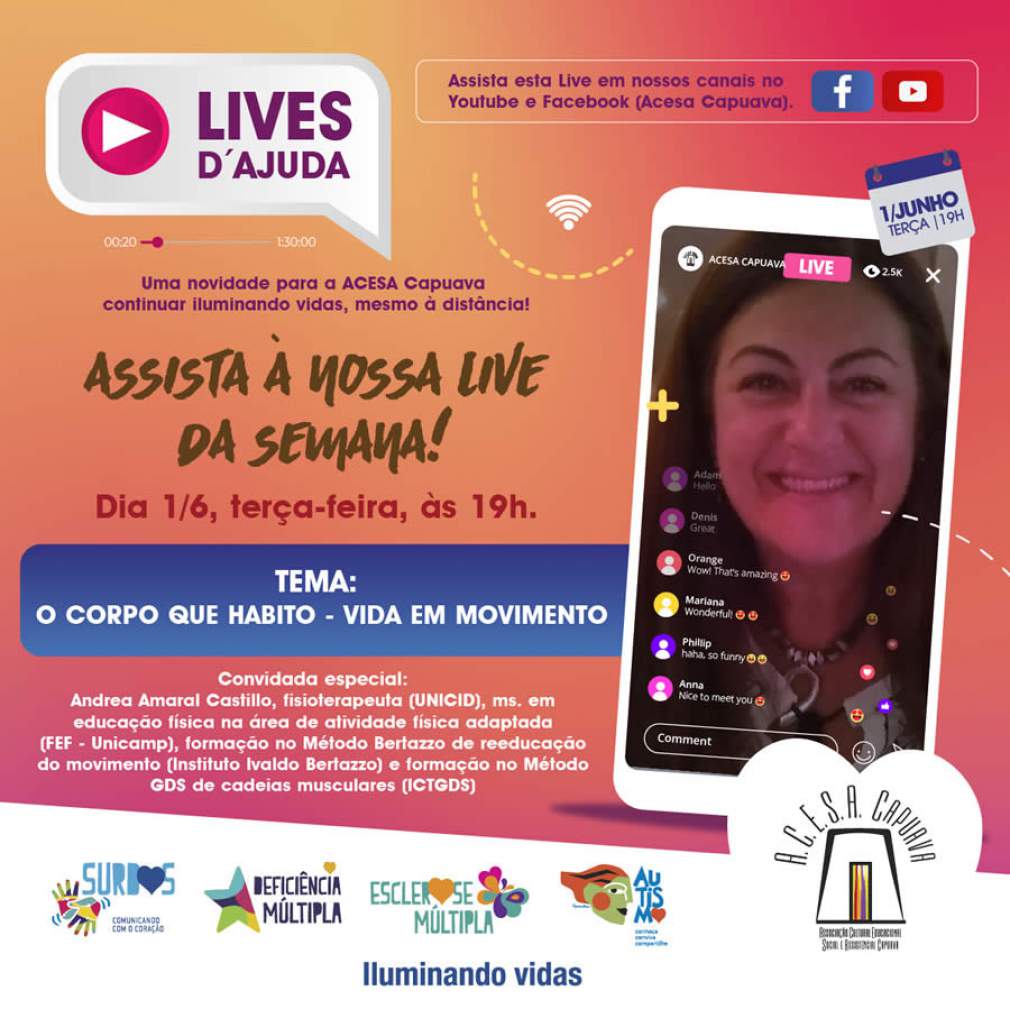 A live faz parte do Projeto “Live D’Ajuda”, o qual tem por objetivo promover encontros online para discutir temas diversos, como forma de ampliação do contato da entidade com o público e um suporte adicional para as famílias assistidas. “Nossa proposta é compartilhar um pouco de reflexão, motivação, inspiração e informação direcionada principalmente para as famílias que atendemos, mas voltada também para toda a comunidade da internet”, diz a presidente da ACESA Capuava, Fernanda Teixeira.