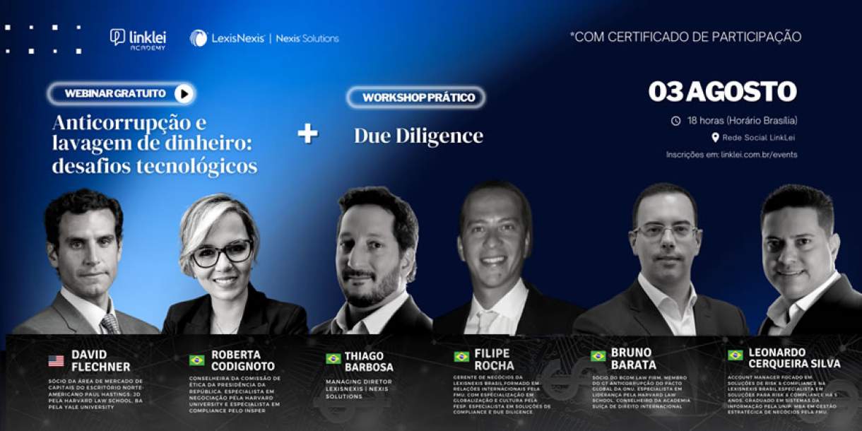 LinkLei Academy promove webinar gratuito sobre os desafios tecnológicos envolvendo anticorrupção e lavagem de dinheiro e wokrshop prático de due diligence