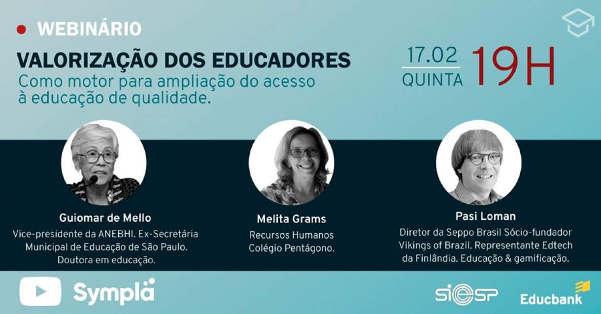 A valorização dos educadores como motor para a ampliação do acesso à educação de qualidade: esse é o tema do próximo webinário do Educbank, primeira instituição financeira dedicada às escolas brasileiras, que está sendo organizado em parceria com o SIEEESP (Sindicato dos Estabelecimentos de Ensino no Estado de São Paulo). No dia 17 de fevereiro, das 19h às 20h30, o evento (online e gratuito) contará com a participação de especialistas experientes do mercado educacional brasileiro e internacional, visando a ampliação do acesso ao ensino de qualidade no Brasil.