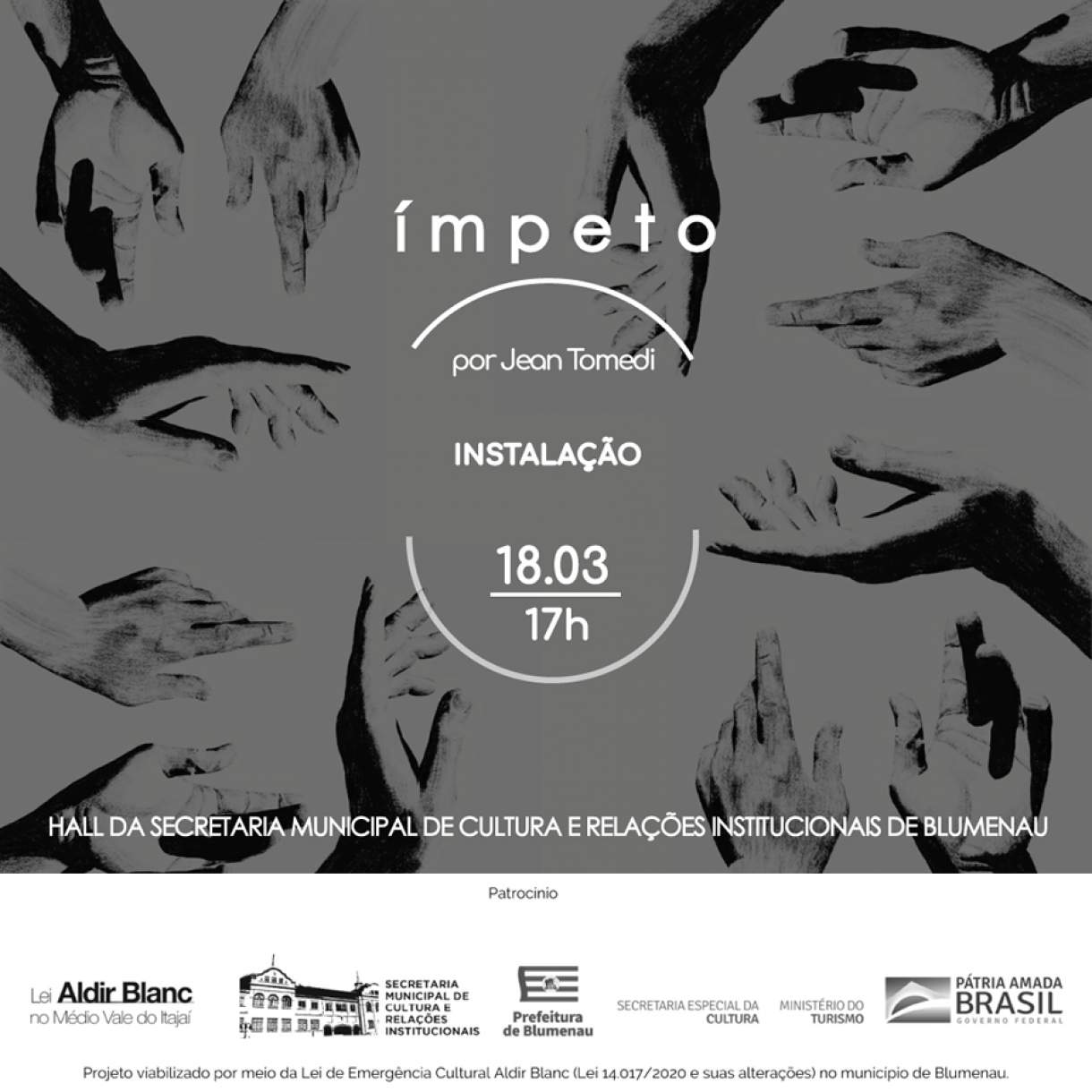 O projeto ÍMPETO, de Jean Tomedi, é viabilizado por meio da Lei de Emergência Cultural Aldir Blanc (Lei nº 14.017/2020) no município de Blumenau.