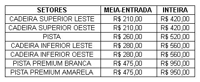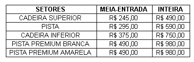 Ingressos: a partir de R$ 210 (ver tabela completa)