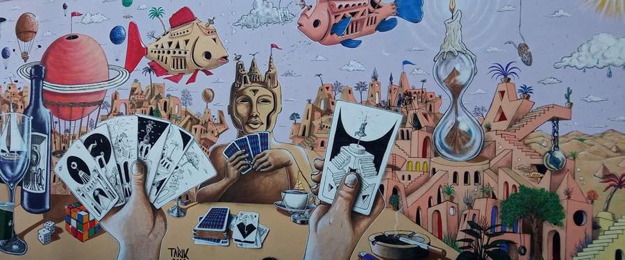 No curso Mundos Imaginários (Pinturas em acrílico inspiradas na arte surrealista) o público aprende técnicas básicas de manuseio da tinta acrílica, a partir de artistas, obras e conceitos surrealistas e reflexões sobre como fazer uso dessas referências. A partir do desenvolvimento de esboços (croquis) a turma transforma o processo criativo em uma tele final.