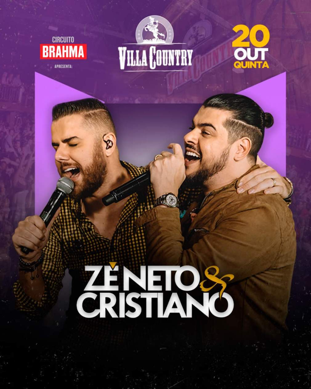 Cuidado com a Sofrência! Zé Neto e Cristiano voltam ao Villa Country para um mega show na casa sertaneja mais importante da América Latina. A apresentação acontecerá na quinta-feira, 20 de outubro e os ingressos começam a ser vendidos.