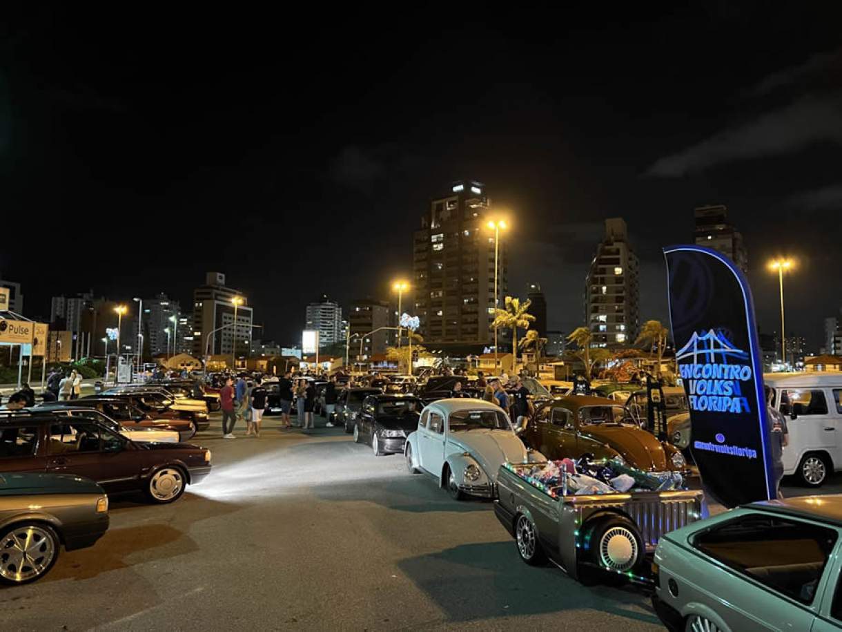 Fuscas, Gols, Kombis, carros de competição e Food Trucks dos anos 1965 até os atuais estacionaram na Beira-Mar Continental, na noite de quinta-feira (15), para o 2º Encontro Volks Floripa.