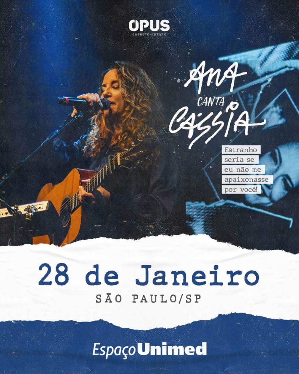 “Ana canta Cássia – Estranho Seria Se Eu Não Me Apaixonasse Por Você”, uma turnê da Opus Entretenimento com direção do premiado Jorge Farjalla, tem apresentação confirmada no dia 28 de janeiro, em São Paulo/SP, no Espaço Unimed. Ingressos já estão à venda em ticket360.com.br e em todas as redes sociais de Ana Carolina (Instagram / Twitter e Facebook)