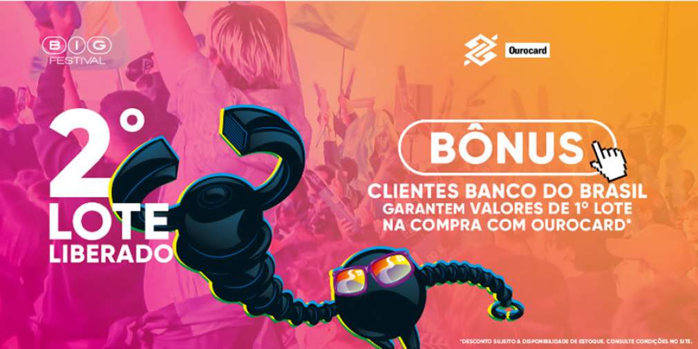 Com a virada para o segundo lote de ingressos do BIG Festival, clientes Ourocard que realizarem a compra de suas entradas para o BIG Festival 2023 continuarão pagando o valor de primeiro lote. Assim, o valor para um dia para um dia de visitação, no valor de R$ 60 a inteira e R$ 30 a meia-entrada, sai por R$ 40 a inteira e R$20 a meia-entrada. Os preços promocionais são válidos para compras tanto no crédito quanto no débito.