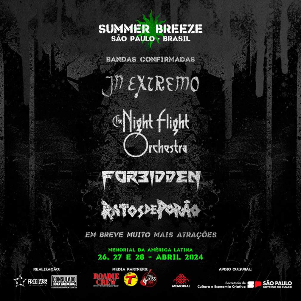 Considerando o estrondoso sucesso da primeira edição no Brasil do festival alemão Summer Breeze Open Air, realizado em 2023 no Memorial da América Latina (São Paulo/SP), a segunda edição segue confirmadíssima para os dias 26, 27 e 28 de abril do próximo ano e mais atrações foram confirmadas e se juntam às já anunciadas Within Temptation, Amorphis, Eclipse e Angra.