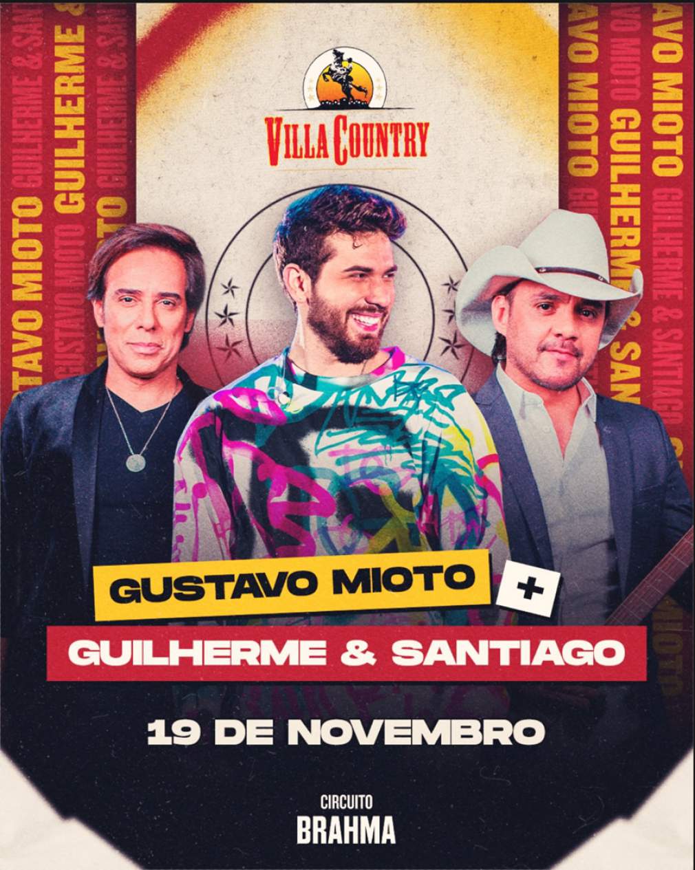 O Villa Country, a maior casa sertaneja da América Latina, apresenta mais uma atração do famoso projeto “Dose Dupla”, que consiste em dois grandes cantores se apresentando em uma única noite. Gustavo Mioto e Guilherme & Santiago subirão ao palco na véspera do feriado, dia 14 de novembro de 2023 (terça) e preparam grandes espetáculos com sucessos atuais e grandes clássicos da carreira.