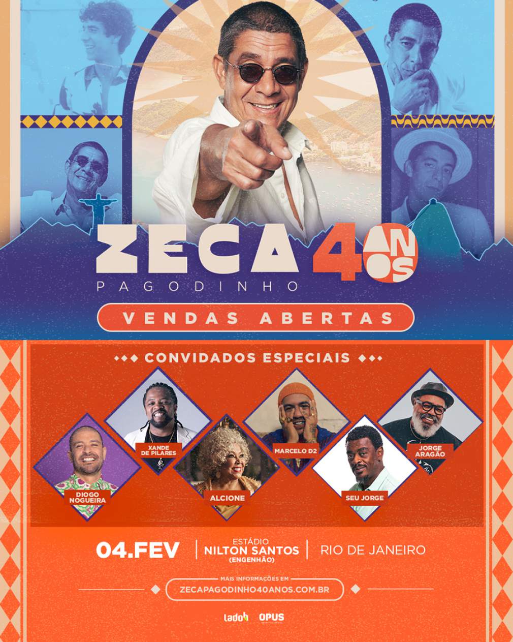 Os ingressos para a apresentação na Cidade Maravilhosa já estão à venda, pelo site ticket360.com e pontos autorizados. Mais informações sobre todas as datas serão reveladas em breve em http://www.zecapagodinho40anos.com.br.