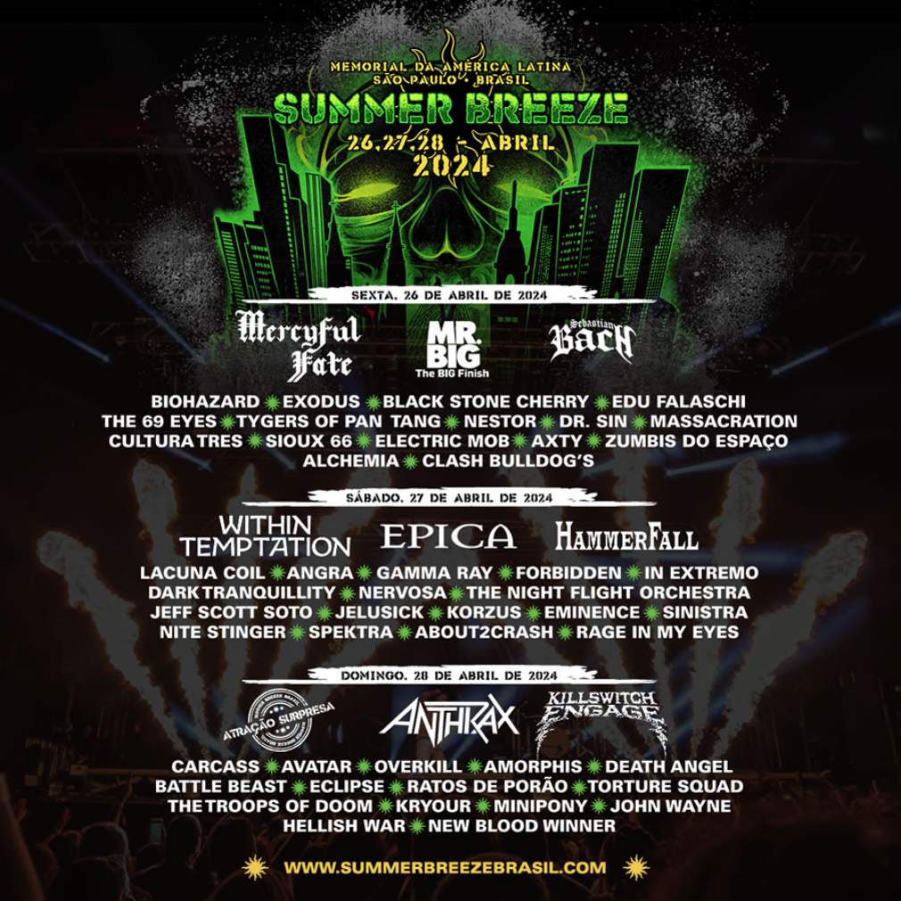 A segunda edição do Summer Breeze Open Air do Brasil, que acontecerá nos dias 26, 27 e 28 de abril de 2024 no Memorial da América Latina (SP), promete proporcionar uma experiência ainda melhor aos espectadores. Como já anunciado, o evento contará com três dias de festival e uma grade maior de atrações, com um aumento significativo de 45% de nomes confirmados quando comparado com a edição que ocorreu em 2023.