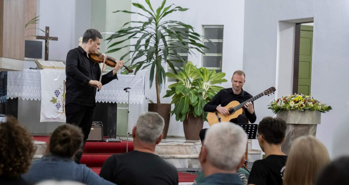 Música instrumental para todos. Nesta sexta-feira, dia 3 de maio, o projeto História do Tango chega à Pomerode e apresenta concerto de música instrumental, violino e violão, com o Duo Girardello & Pofahl, no Auditório Colégio Sinodal Doutor Blumenau. A apresentação ocorre às 19h, com entrada gratuita e aberta a toda comunidade. O Duo é formado pelo violinista Daniele Girardello e pelo violonista William Pofahl, e no total, serão 10 concertos de música clássica instrumental gratuitos à comunidade até o fim de maio. A circulação também irá passar pelas cidades de Timbó, Brusque, Rodeio, e Blumenau; esta última cidade recebe mais uma apresentação e encerra o circuito. Acompanhe a programação pelo www.instagram.com/duogirardellopofahl