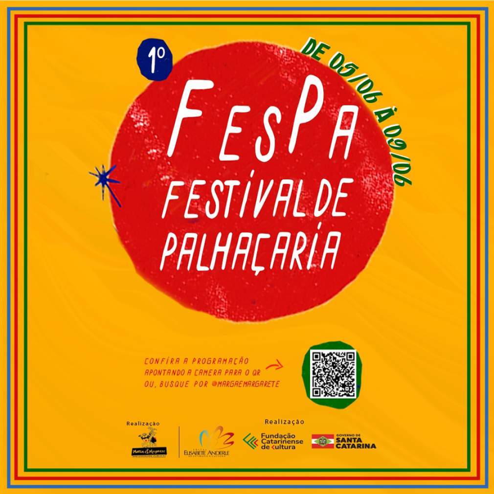 O projeto FESPA - Festival de Palhaçaria é contemplado pelo Prêmio Elisabete Anderle de Apoio à Cultura, executado com recursos do Governo do Estado de Santa Catarina, por meio da Fundação Catarinense de Cultura (FCC). Acompanhe as novidades pelo www.instagram.com/margaemargarete