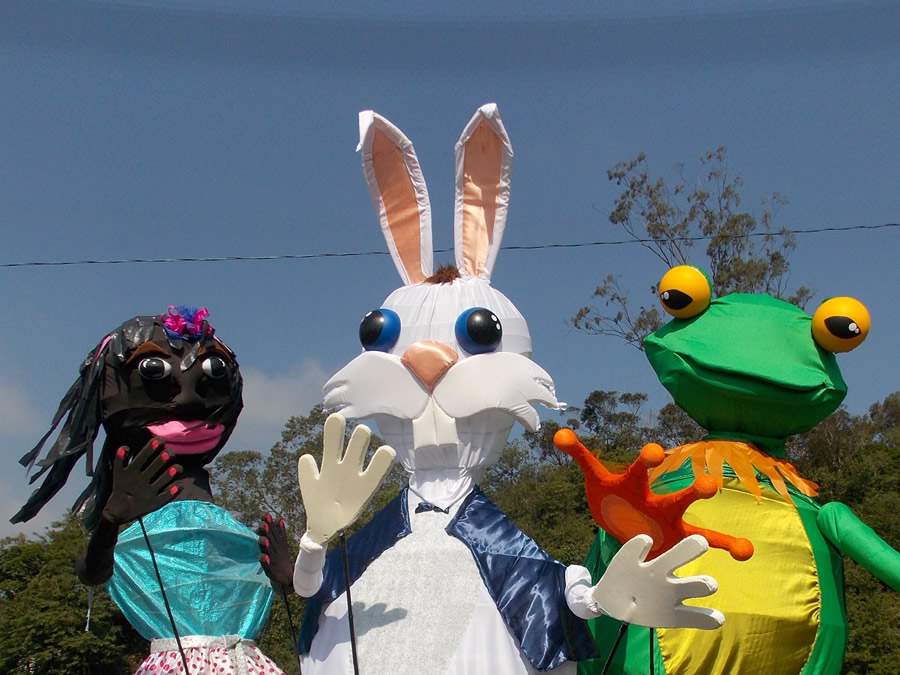Os idealizadores da ação pioneira na região, Rafael Leandro e Priscila Gilinski, à frente da Cia Macadame, explicam que uma das bonecas gigantes, a Zazzau foi inspirada na personagem do livro infantil de Ana Maria Machado, Menina Bonita do Laço de Fita; já, o segundo boneco gigante, é o Sapo Di; o terceiro, O Coelho Jorel; e o quarto, O Peixe Peixoto; personagens escolhidos a partir de Canções Infantis: Mulher Rendeira, Samba Lelê, Alecrim Dourado, Sapo Que Não Lava o Pé, Coelhinho, Marinheiro, Peixinho no Mar e Peixe Vivo. Músicas gravadas pelo artista Rafael Leandro serão reproduzidas por meio de caixa de som para contribuir com as performances artísticas dos bonecos.