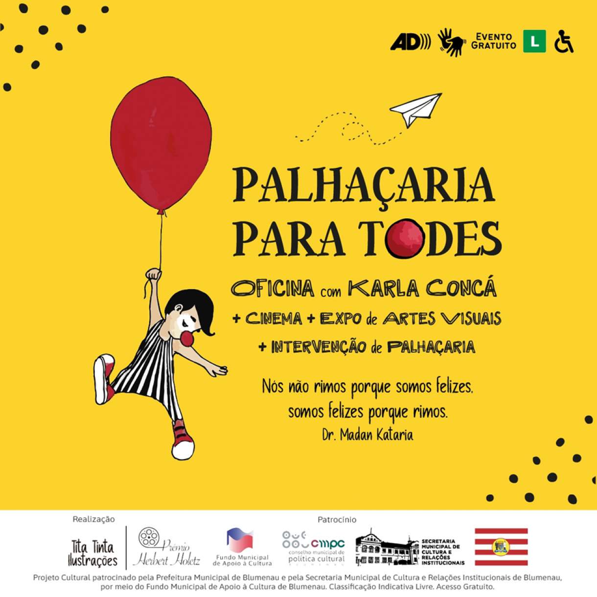 A arte do riso e palhaçaria em formação. De 6 a 8 de setembro, o projeto Palhaçaria para Todes traz a Blumenau a Oficina Onde Botei Meu Nariz?, com a artista e mestra na área, Karla Concá (RJ), integrante do primeiro grupo de Palhaçaria composto por mulheres do Brasil, As Marias da Graça, com uma trajetória de mais de 23 anos. A ação ocorre durante os três dias na Secretaria Municipal de Cultura do município, e as inscrições são gratuitas pelo link https://forms.gle/gWu813agxgk3Mogq5 - Além da oficina, o projeto conta com várias ações em agosto e setembro, como roda de conversa, exibição de documentário, cine-debate, declamação de poesia surda, intervenções artísticas e exposição fotográfica; com o objetivo de trazer experiências diversas, sensibilizar, e conectar oficinantes e público, com e sem deficiência, ao universo lúdico e extraordinário da palhaçaria. Todas as ações são gratuitas e contam com intérpretes de LIBRAS.