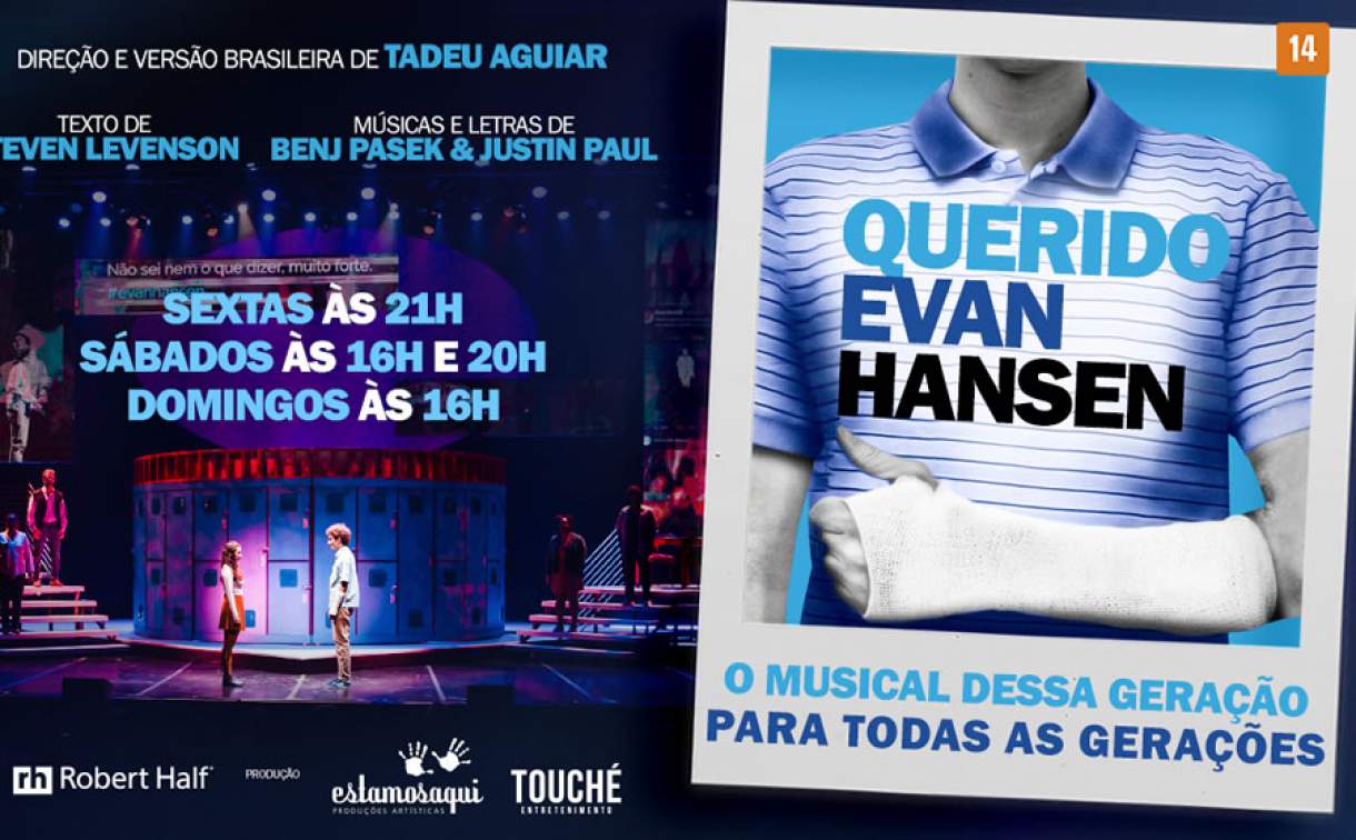 Com uma trilha sonora emocionante e letras que tocam fundo, dos premiados compositores Benj Pasek e Justin Paul, "Querido Evan Hansen" aborda temas como saúde mental, relações familiares, fobia social e o impacto das redes sociais na vida dos jovens de forma autêntica e inspiradora, explorando camadas de forma leve, sensível e divertida através de seus oito personagens. A história de Evan, um adolescente com ansiedade social que se envolve em uma mentira que o coloca no centro das atenções, é um convite à reflexão sobre a importância da empatia e da conexão humana.