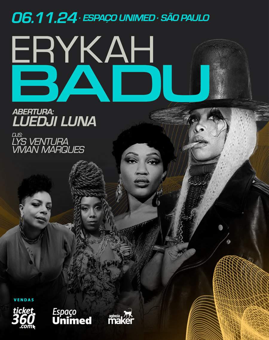 SERVIÇOS: Erykah Badu no Espaço Unimed em São Paulo
