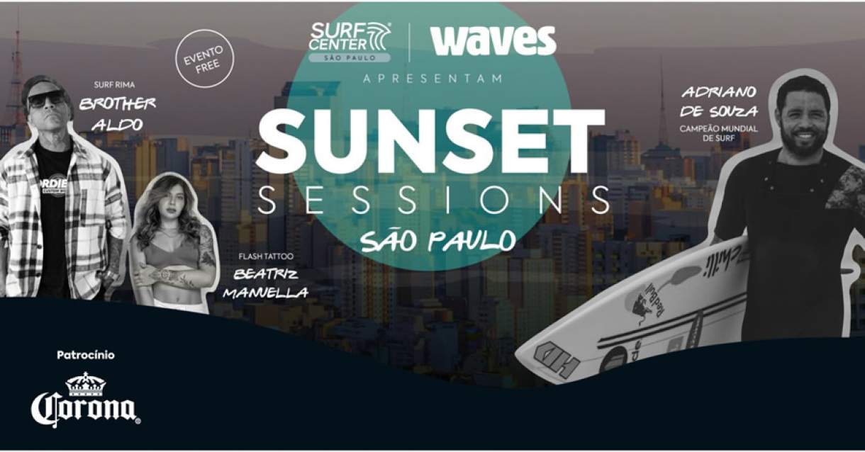 O evento, realizado em parceria com a Revista Waves, visa posicionar a Surf Center House como o point dos surfistas paulistanos e promover a cultura do surf. O campeão mundial de surf e também um dos sócios embaixadores da Surf Center, Adriano de Souza, o Mineirinho, estará presente para uma sessão de autógrafos. O Sunset Sessions SP irá proporcionar atividades interativas, painéis, sorteios e muita música ao vivo, com show do Brother Aldo (Felipe) e Flash Tattoo, com Beatriz Manuella. O evento também conta com food trucks e patrocínio da Corona.
