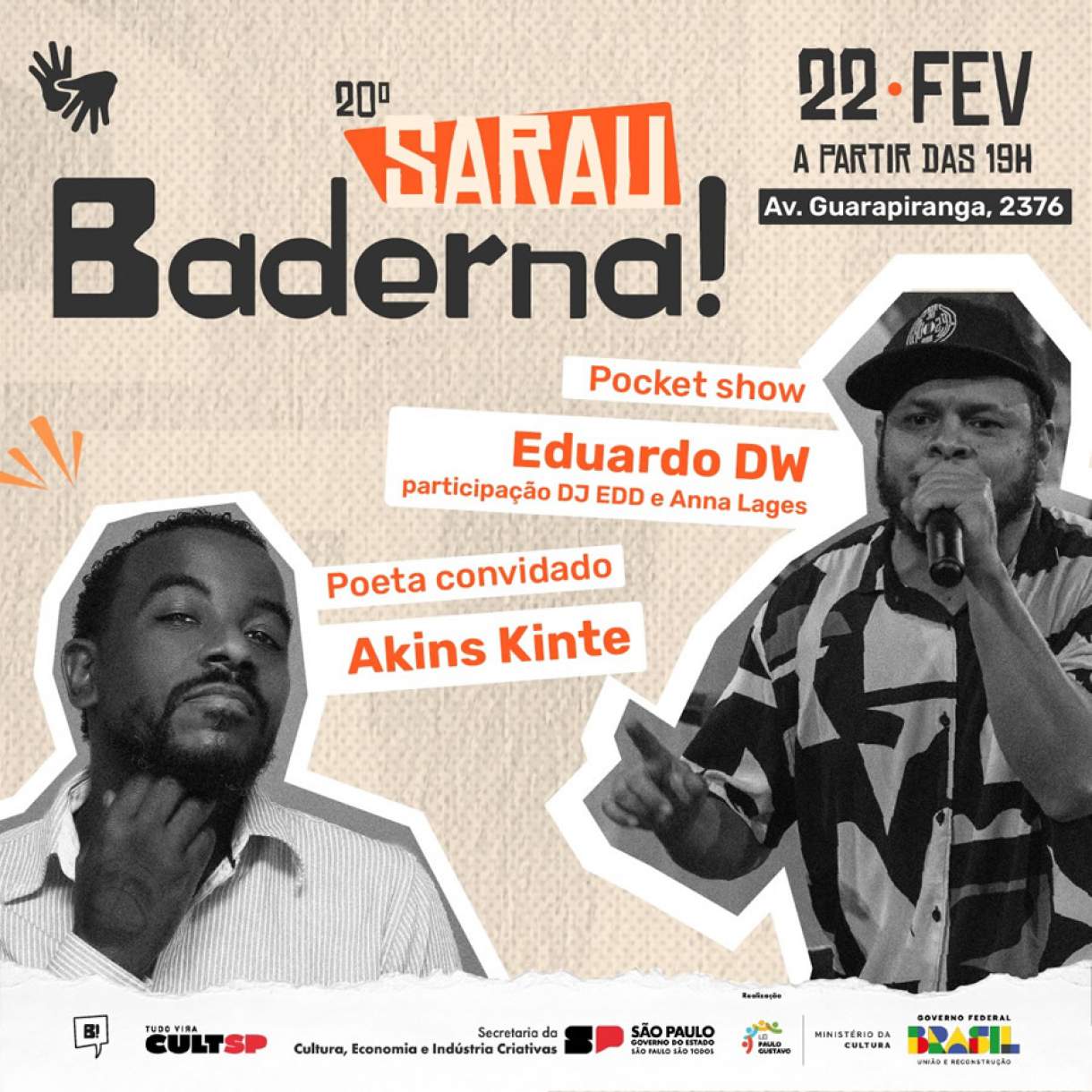 Grupo Baderna convida Akins Kinte e Eduardo DW para uma noite repleta de literatura e reflexões periféricas