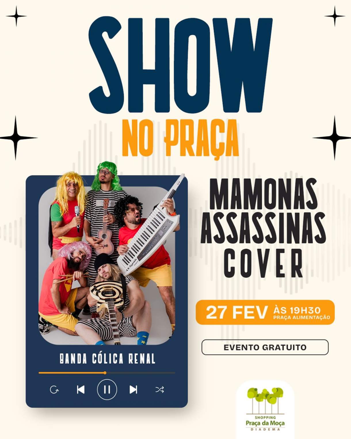 O Shopping Praça da Moça, em Diadema, na região do ABC Paulista, abre-alas com uma edição especial de carnaval do “Show no Praça”. O evento, que acontece no dia 27/02, a partir das 19h30, na praça de alimentação, conta com a apresentação da banda “Cólica Renal” e seu tributo aos “Mamonas Assassinas”.