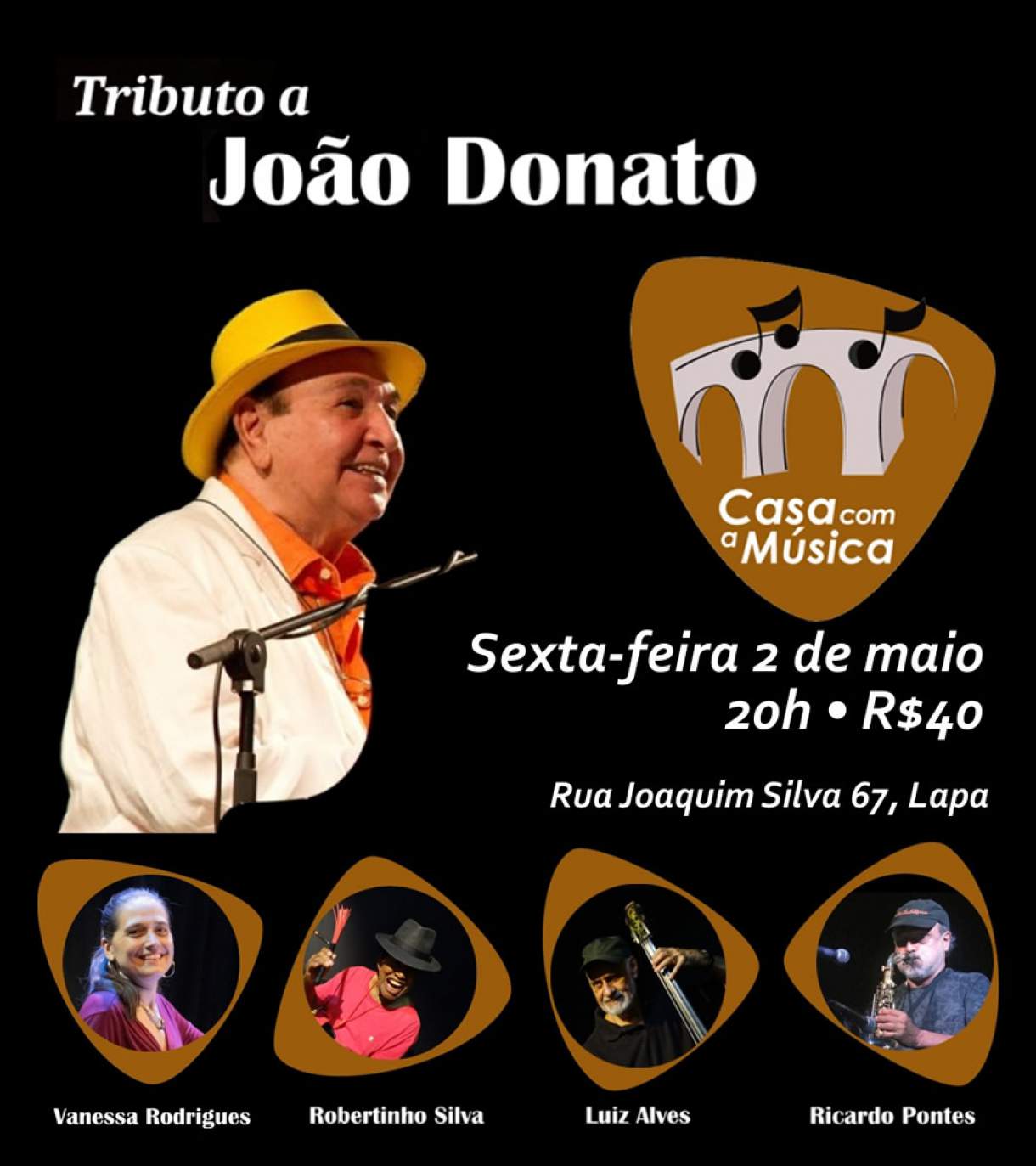 A pianista canadense Vanessa Rodrigues convida os integrantes veteranos da banda do João Donato, o baterista Robertinho Silva, o baixista Luiz Alves, e o saxofonista Ricardo Pontes, para homenagear esse grande mestre da música brasileira. Será na Casa com a Música, na Lapa, na sexta-feira, 02 de maio, às 20h.