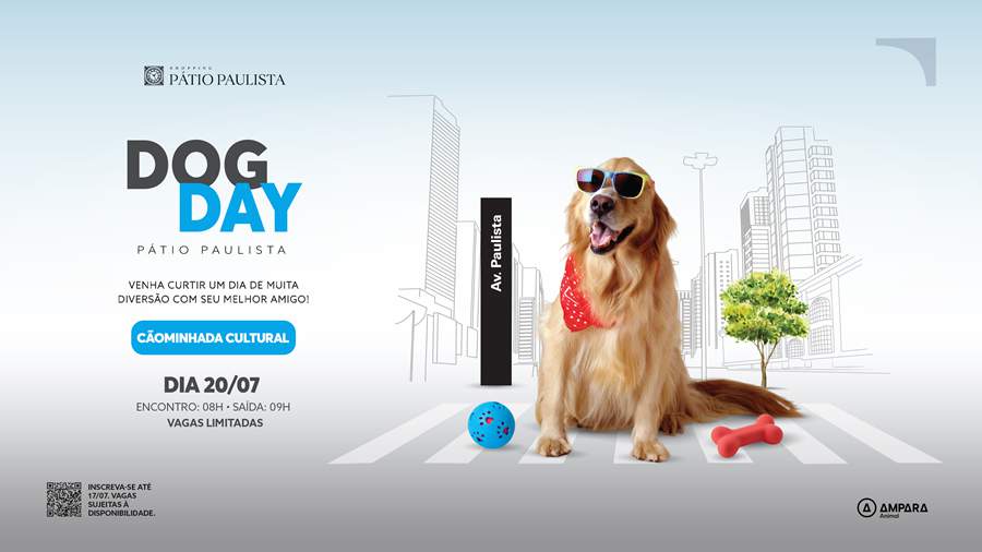 O Shopping Pátio Paulista promove no próximo dia 20 de julho (domingo) a Dog Day, uma animada e cultural “cãominhada” pela Avenida Paulista, idealizada para toda a família acompanhada dos seus bichinhos de estimação. Com vagas limitadas, as inscrições podem ser feitas no Pátio Esportes e estarão abertas ao público a partir do dia 11 de julho. Com largada marcada para as 9h, o evento tem início às 8h na arena cenográfica montada em frente ao shopping, na Praça Oswaldo Cruz.