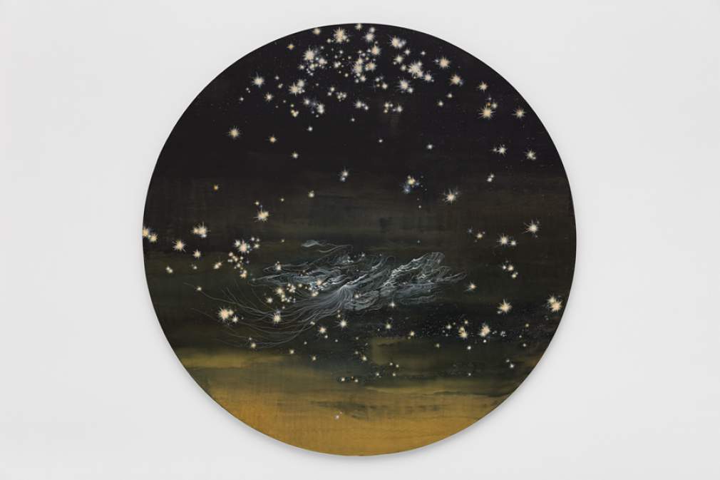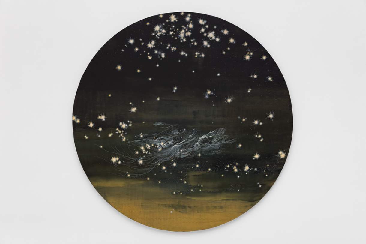 Bem no centro do espaço principal, um grande biombo circular, concebido especialmente para a exposição, convida o público a um momento de contemplação dos infinitos espaciais e interiores. A peça - historicamente associada à ideia de passagem, proteção e delimitação – traduz, em formas concretas, o resultado da pesquisa da artista sobre fronteiras instáveis e territórios imaginários.