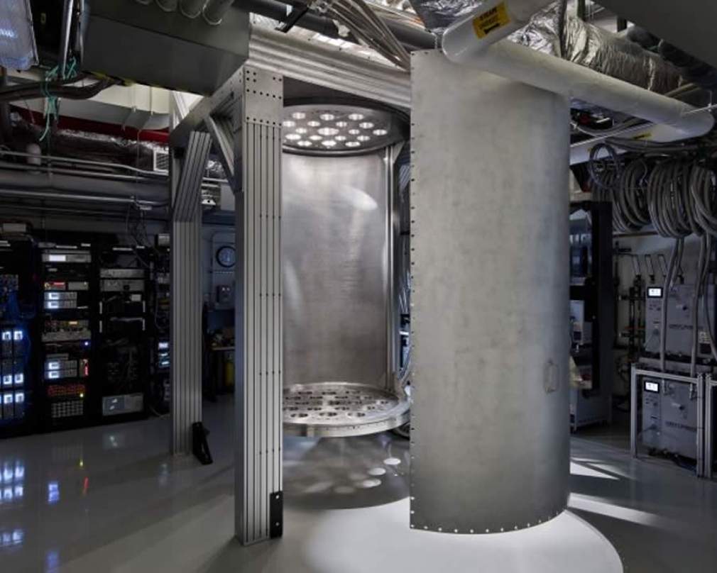 É por isso que também estamos introduzindo um "super cooler" de 3 metros de altura e 1,80 de largura conhecido como "Goldeneye", um refrigerador de diluição maior do que os disponíveis comercialmente hoje. Nossa equipe projetou este gigante com um sistema de um milhão de qubits em mente e já começou os testes de viabilidade fundamentais. Em última análise, imaginamos um futuro no qual as interconexões quânticas conectem refrigeradores de diluição, cada um milhão de qubits, assim como a intranet se conecta a processadores de supercomputação, criando um computador quântico maciçamente paralelo capaz de transformar o mundo.