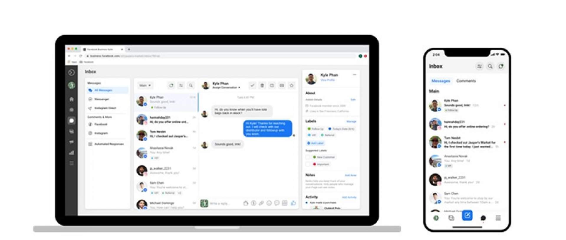 Apresentamos o Facebook Business Suite, uma nova interface para ajudar as empresas a economizarem tempo e se manterem atualizadas, gerenciando suas Páginas do Facebook e Perfis do Instagram em nossos aplicativos. Este novo espaço permite o agendamento e a postagem em ambas plataformas ao mesmo tempo, além de gerenciar e receber mensagens, notificações e alertas em um só lugar. As pequenas empresas também poderão ver facilmente os posts e campanhas que estão funcionando e, com os insights do Facebook e Instagram, saber o que está fazendo sucesso entre os clientes.