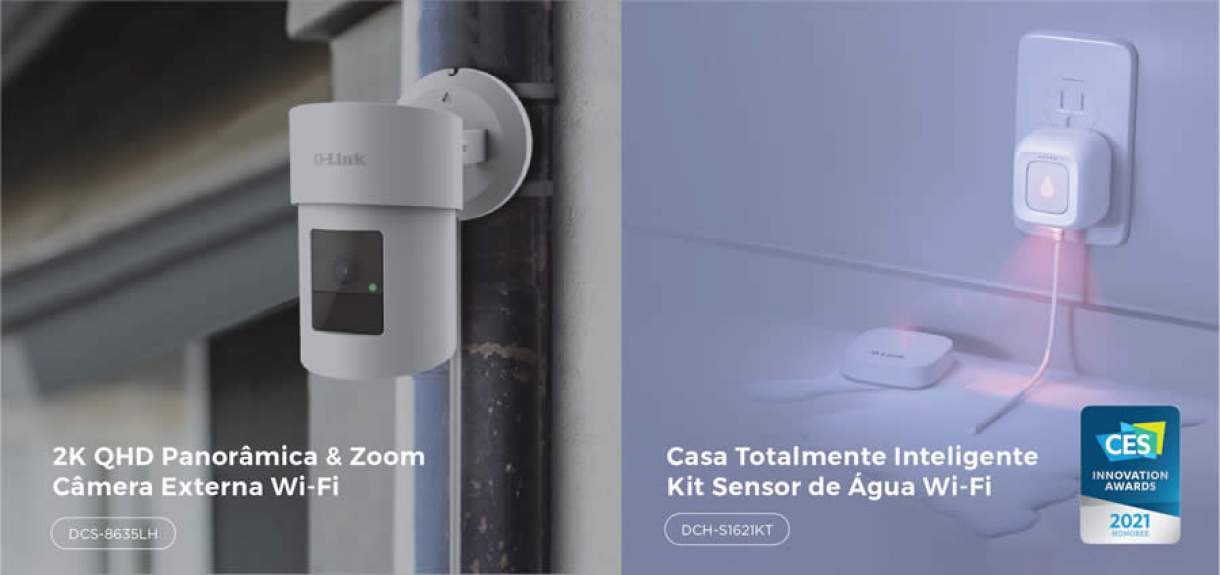 O DCH-S1621KT da D-Link é o mais recente vencedor do Prêmio de Inovação da CES 2021 - o kit de sensor de água Smart Wi-Fi para toda a casa, que consiste em um hub / sensor central (DCH-S162) e um sensor alimentado por bateria conectado (DCH-S163). O vazamento de água é um grande risco que pode destruir propriedades e ameaçar a segurança das pessoas em casa. O DCH-S1621KT pode detectar e alertar os usuários sobre vazamentos de água causados por chuvas fortes ou falhas no equipamento, de forma que ações preventivas possam ser tomadas antes que os danos sejam significativos. O tamanho compacto e o design de longa distância e baixo consumo de energia permitem uma cobertura de detecção de água de alta confiabilidade em vários locais. Apresentando uma sirene de 100 db embutida e LED estroboscópico, os usuários são alertados de forma audível e visível, bem como recebem uma notificação no aplicativo mydlink quando um vazamento de água é detectado. Fáceis de instalar, os sensores de água vêm pré-pareados ao hub para que os usuários simplesmente precisem configurar o dispositivo central para monitorar toda a casa.