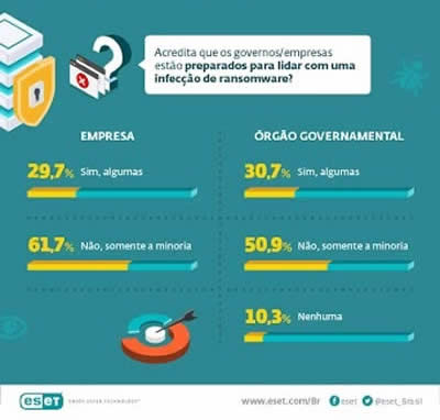 Pesquisa revelou que 61,7% dos usuários não acreditam que as empresas estão preparadas para lidar com uma infecção de ransomware e 50,9% pensam o mesmo em relação às entidades governamentais