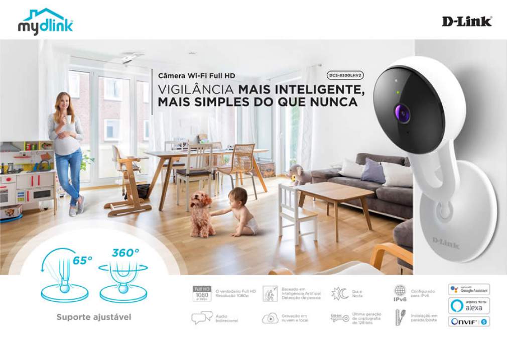 Recursos adicionais incluem suporte para WPA3 ™, Google Assistant e compatibilidade com Alexa, e suporte para ONVIF Profile S. A configuração rápida e fácil é garantida com sua tecnologia BLE embutida, e suporte para IPv6 significa que o DCS-8300LHV2 é compatível com o próximo geração de padrões de internet.