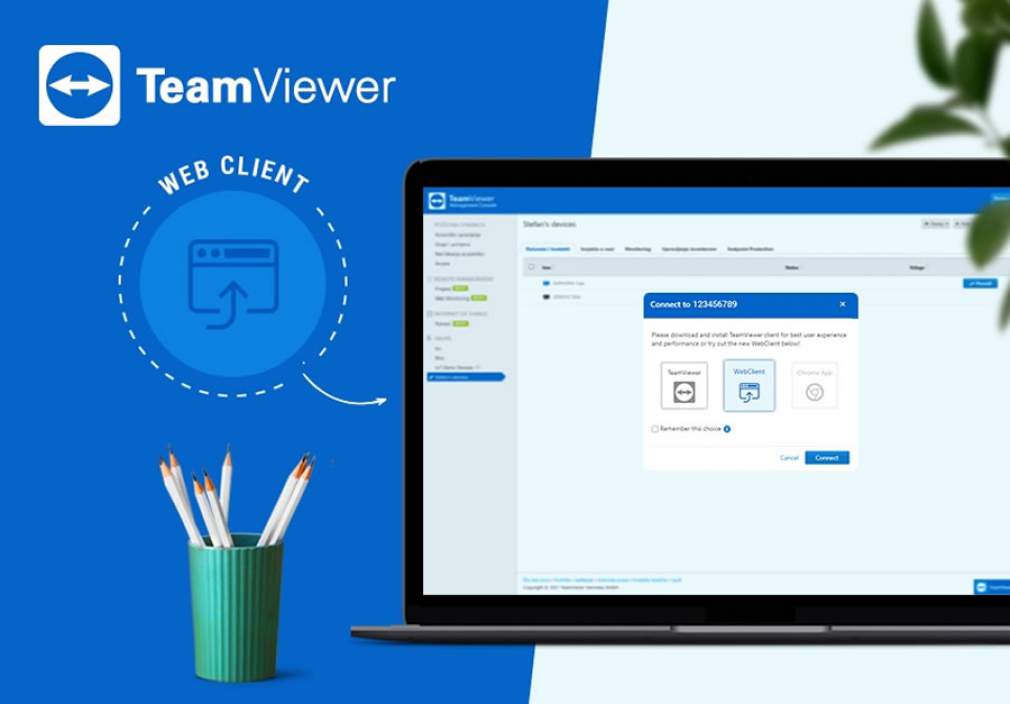 A TeamViewer, provedora líder global de soluções rápidas e seguras de conectividade remota, anuncia o lançamento do TeamViewer Web Client à sua base de assinantes Premium, Corporate, Tensor ou de Acesso Remoto. Baseado em HTML 5, o novo TeamViewer Web Client permite acesso remoto seguro a outros devices através dos navegadores Chrome, Firefox, Opera e Edge, com conexão que pode ser iniciada a partir da lista de contatos da plataforma de gerenciamento TeamViewer Management Console ou via online. O TeamViewer Web Client permite acesso a dispositivos Windows, MacOS e Linux que utilizam a versão full do TeamViewer, do TeamViewer Host ou do TeamViewer QuickSupport.