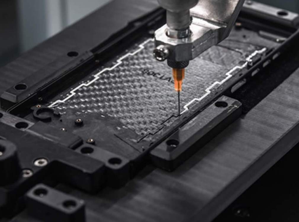 O material de base para a tecnologia HyRECM da Carbon Mobile é um composto termoplástico da linha de produtos Tepex Dynalite da LANXESS. É reforçado com tecidos de filamentos contínuos de fibra de carbono 1K incrivelmente finos. A tecnologia HyRECM patenteada funde fibras de carbono com um material composto complementar capaz de permeação de sinal de RF. Para aumentar ainda mais a conectividade dos dispositivos, uma tinta condutora impressa em 3D exclusiva é integrada à estrutura de fibra de carbono. (Foto: Carbon Mobile)