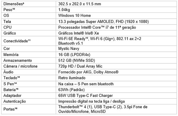 Disponível na cor Mystic Silver com tela de 15 polegadas, o Galaxy Book Pro tem preço sugerido de R$ 11.499. Já o Galaxy Book Pro 360 está disponível na cor Mystic Navy com tela de 13,3 polegadas e tem preço sugerido de R$ 10.999. Ambos os dispositivos podem ser encontrados nas lojas online e físicas da Samsung e em redes varejistas.