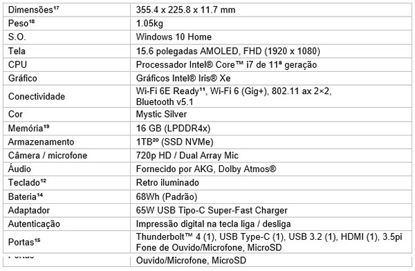 Os dois modelos oferecem maior desempenho por conta dos processadores Intel® Core™ i7 da 11ª geração e gráficos Intel® Iris® Xe. Além disso, as telas AMOLED oferecem uma melhor experiência de uso por meio de cores mais vivas, contrastes bem definidos e maior nitidez da imagem.