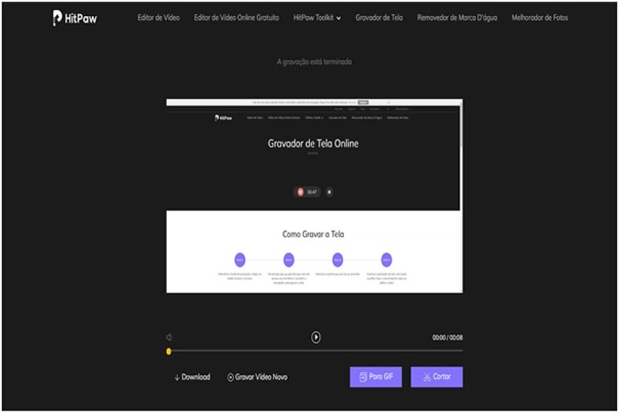 Com esses passos, aproveite para já ver como funciona na prática este gravador de tela online grátis e já gravar agora a tela do seu computador com o HitPaw Gravador de Tela Online!