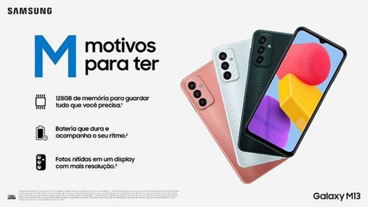O novo Galaxy M13 chega ao Brasil nesta segunda-feira (4) trazendo qualidades já conhecidas da linha M, como a performance potente. Disponibilizado exclusivamente online, o smartphone traz inovações Galaxy essenciais para o dia a dia do consumidor, como bateria de longa duração e carregamento rápido, um processador veloz e um conjunto triplo de câmera para registrar todos os momentos especiais.