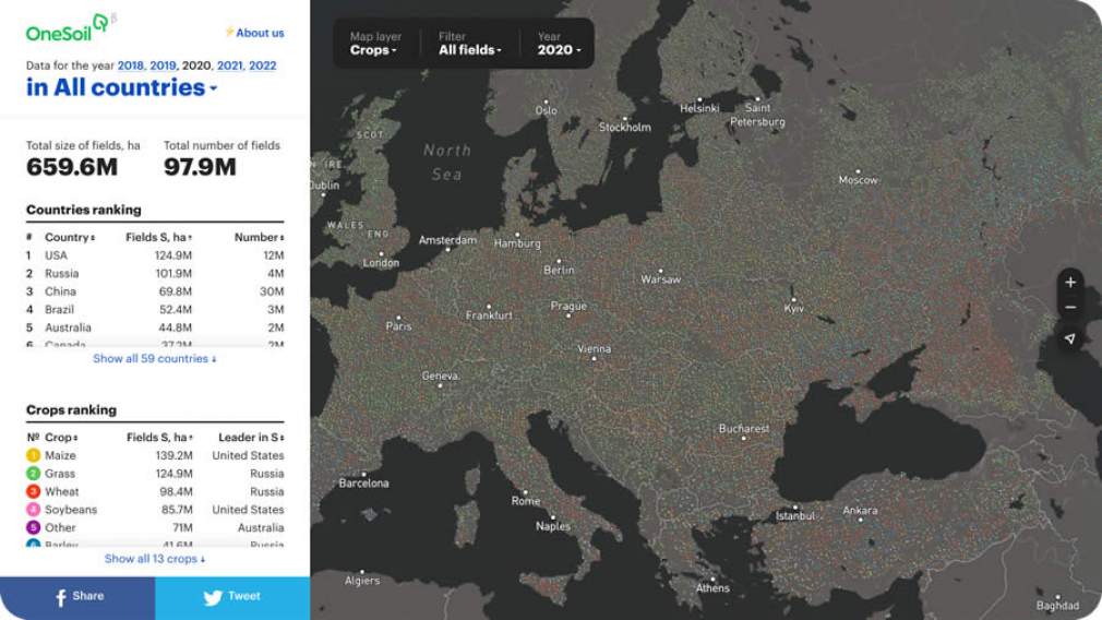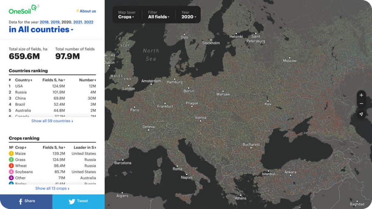 A OneSoil resolve problemas agrícolas com imagens de satélite e algoritmos proprietários de aprendizado de máquina. “Criamos e validamos essas tecnologias em cooperação com parceiros ucranianos”, explica Morten Schmidt, CEO da OneSoil. De acordo com o executivo, “os dados usados para treinar nossos modelos foram inicialmente obtidos de parceiros agrícolas como a IMC, uma das 10 maiores propriedades ucranianas. Isso nos permitiu criar o aplicativo OneSoil e o OneSoil Map, nossa solução de visualização e mapeamento de dados que permite que as empresas agrícolas visualizem grandes conjuntos de dados mundiais e forneçam insights em uma escala global sem precedentes. Estamos desenvolvendo este mapa interativo desde 2018 e foi essa experiência que nos permitiu a estimativa da situação atual na Ucrânia”.