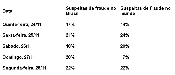 O estudo também revelou a taxa de suspeita de fraude digital para cada dia de compras no país.