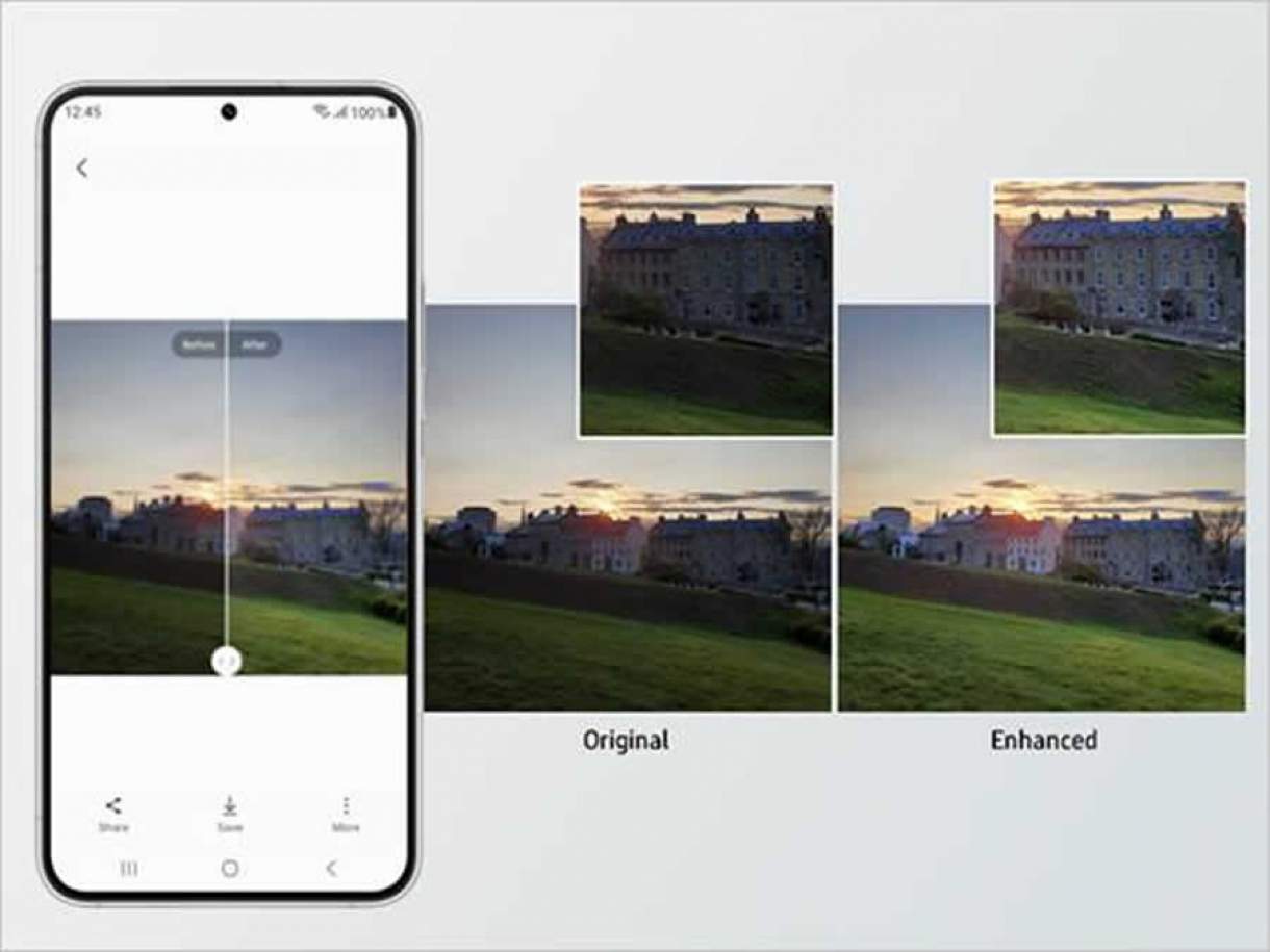 A One UI 5.1 expande os recursos de câmera recentemente atualizados que foram anunciados com a linha Galaxy S23 5G. As pessoas agora têm maior flexibilidade para criar fotos de qualidade profissional com os recursos Expert RAW4, agora disponíveis para os Smartphones compatíveis diretamente como parte do aplicativo de câmera Galaxy. Basta selecionar “Mais” enquanto fotografa para capturar imagens de alta qualidade em seu formato raw. Além disso, a função Remasterizar Foto aprimorada, baseada em Inteligência Artificial (IA), melhora automaticamente os detalhes deteriorados das imagens, aprimorando o brilho, ajustando os detalhes e fazendo correções de cores mesmo em cenas com luz de fundo. O recurso também remove sombras e reflexos indesejados para uma foto5 perfeita.