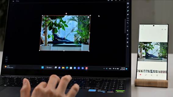 Assim que o smartphone Galaxy e o PC estiverem conectados, as fotos tiradas com o Expert RAW serão sincronizadas diretamente com a linha Galaxy Book3, permitindo que as pessoas comecem a editá-las imediatamente.