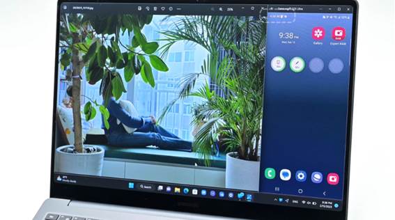O aplicativo Microsoft Phone Link oferece uma experiência conectada ainda mais profunda entre os dispositivos. É possível visualizar e usar aplicativos e serviços de smartphone na linha Galaxy Book3 ao conectar um smartphone Galaxy ao seu PC. Ele também permite enviar e receber chamadas e mensagens de voz, além de abrir aplicativos nos PCs, mesmo em apps normalmente projetados apenas para smartphones.