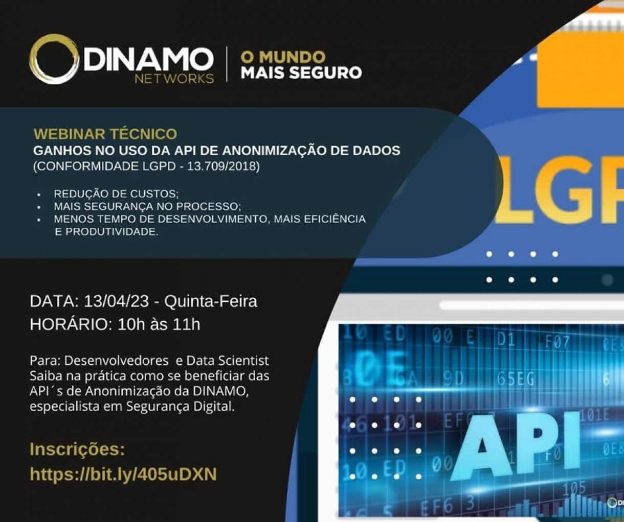 A DINAMO Networks - especialista em segurança digital, realiza, na quinta-feira (13), um webinar sobre o uso da API de Anonimização de Dados, desenvolvida pela empresa. O evento técnico, que será on-line e gratuito, acontece das 10h às 11h, e tem como objetivo os ganhos no uso da API de anonimização de dados, em conformidade com a Lei Geral de Proteção de Dados Pessoais (LGPD), Lei nº 13.709/2018, é a legislação brasileira que regula as atividades de tratamento de dados pessoais e que também altera os artigos 7º e 16 do Marco Civil da Internet. Esse encontro virtual é direcionado para desenvolvedores e cientistas de dados.