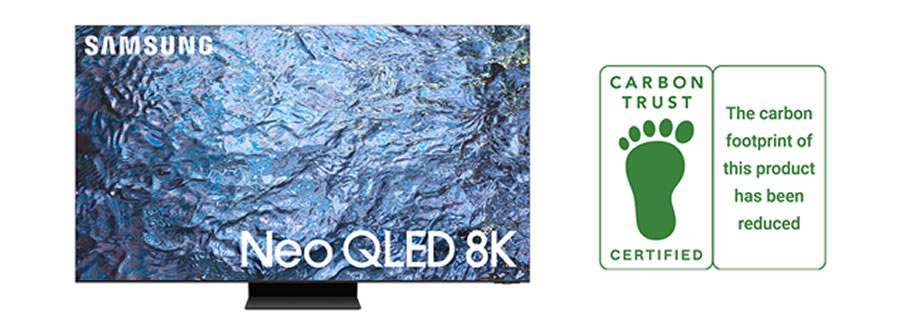 Os modelos Neo QLED 2023 obtiveram a certificação em reconhecimento aos esforços da Samsung em reduzir o peso dos produtos e o consumo de energia durante a fase de uso em relação aos seus antecessores. Os seis modelos certificados incluem três telas Neo QLED 8K e três telas Neo QLED 4K2. Como a Samsung pretende ampliar o escopo desses esforços, espera obter a certificação de pegada de carbono para mais de 20 modelos este ano na mais recente linha de TVs QLED, Crystal UHD, bem como monitores e produtos de sinalização.