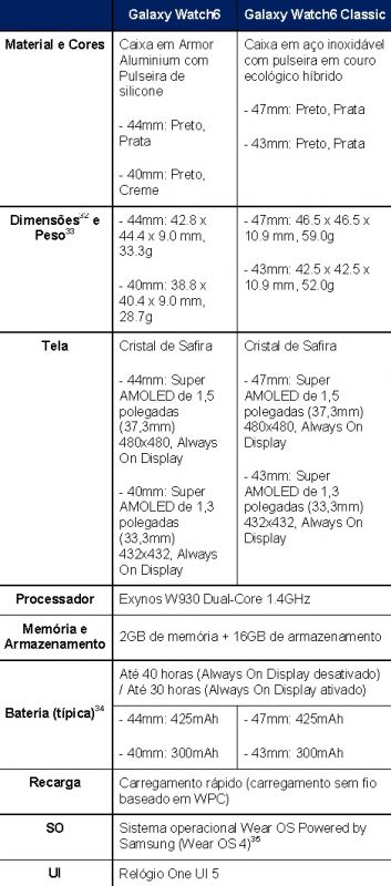 22 Em comparação com o Galaxy Watch5 e Galaxy Watch4 Classic, respectivamente.
