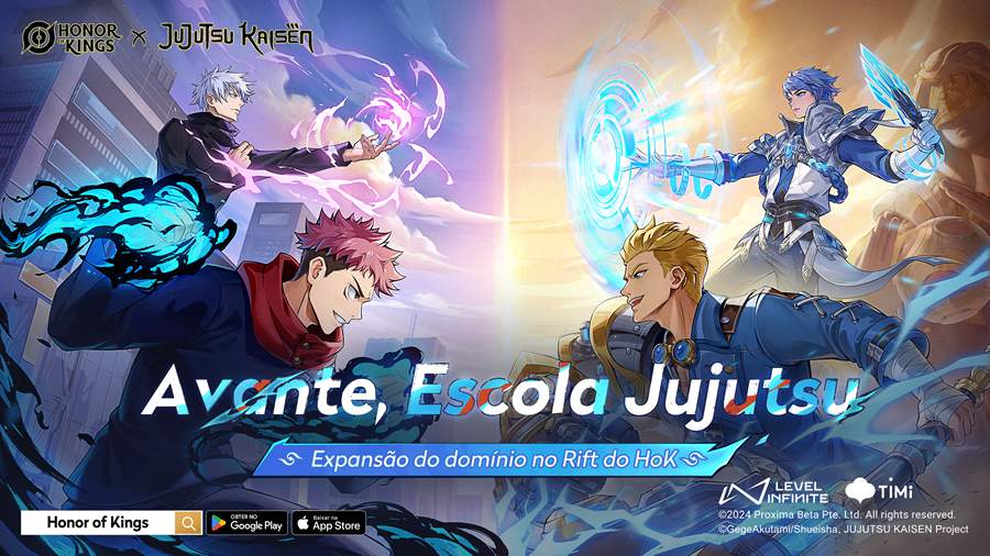 Hoje começa a mais nova colaboração de Honor of Kings, que une forças com Jujutsu Kaisen. Três personagens da franquia chegam ao universo de Honor of Kings com uma seleção de conteúdos e eventos temáticos, prometendo encantar os jogadores.