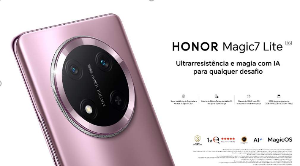 A HONOR, a marca global de tecnologia, apresentou hoje o tão aguardado HONOR Magic7 Lite. Estabelecendo um novo padrão em liderança de ultrarresistência, o HONOR Magic7 Lite combina durabilidade excepcional, bateria de longa duração, qualidade de tela impressionante, capacidades fotográficas avançadas e uma experiência de inteligência artificial de última geração. Com um design leve que eleva a estética premium a novos patamares, o HONOR Magic7 Lite se apresenta como a opção ideal para quem busca um dispositivo de alto desempenho com um design excepcional.